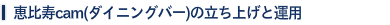 自社のオフィス兼バーとして、ダイニングバー『cam』(www.bar-cam.jp)を開業し現在も営業中。リアルの場での人の交流のハブとしてプロデュース。立地調査、物件選定、店舗コンセプト、店舗内装外装ディレクション、メニュー開発まで飲食店舗に必要な許認可と運用の全てを担う。2007年5月4日にオープン。他、野菜レストランからシャンパンバーまで受託での飲食店立上事例有。